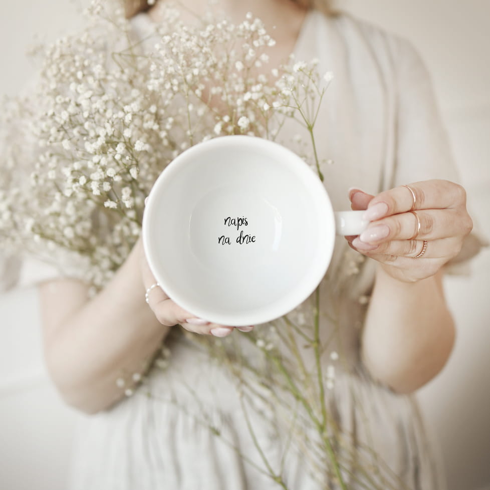 Informacje dodatkowe: personalizacja jest w czerni; CAPS LOCK wymusza styl drukowany. Porcelana ze złoceniem nadaje się do zmywarki do 60°C, ale nie do mikrofalówki; produkty pakowane są w ekologiczne kartoniki.