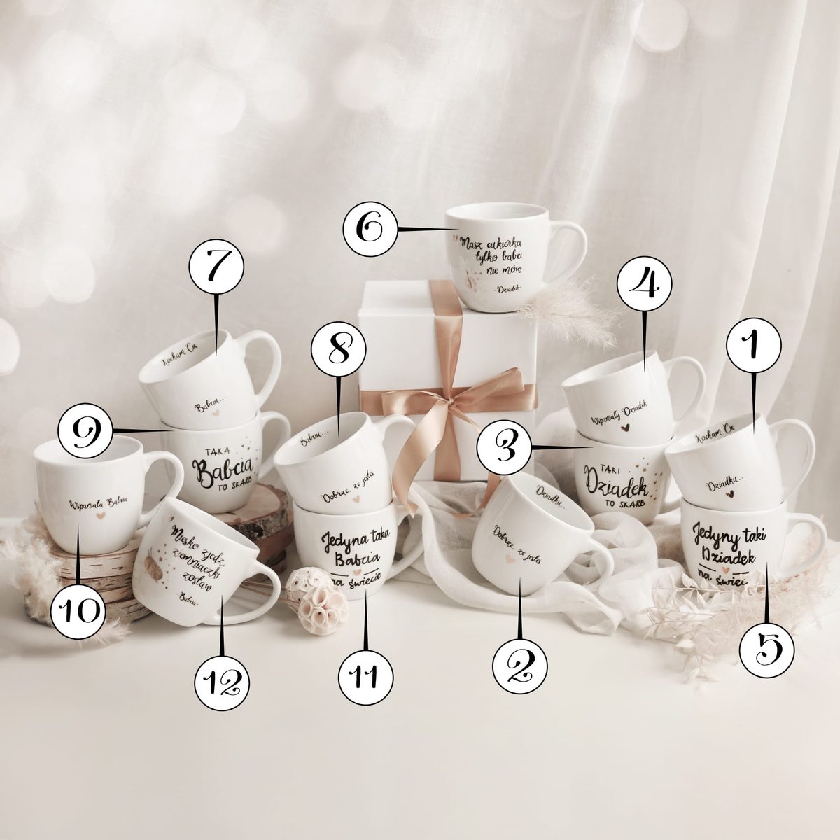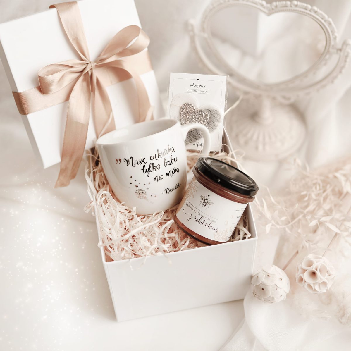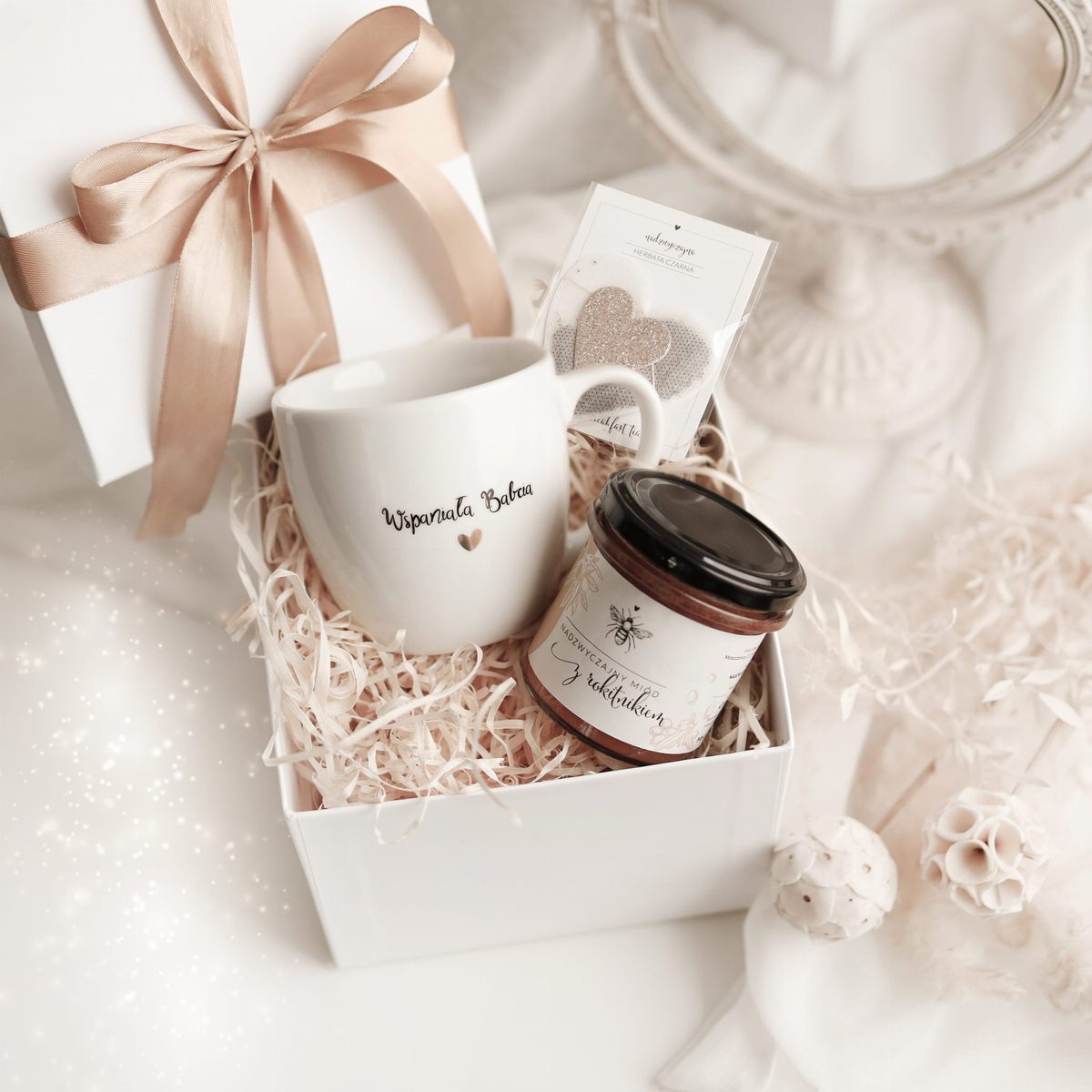 Biały box prezentowy porcelanowy dla babci lub dziadka na Dzień Babci i Dziadka
