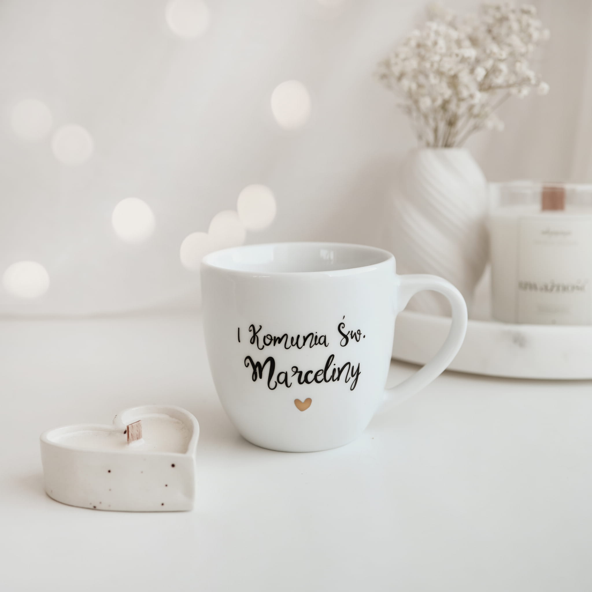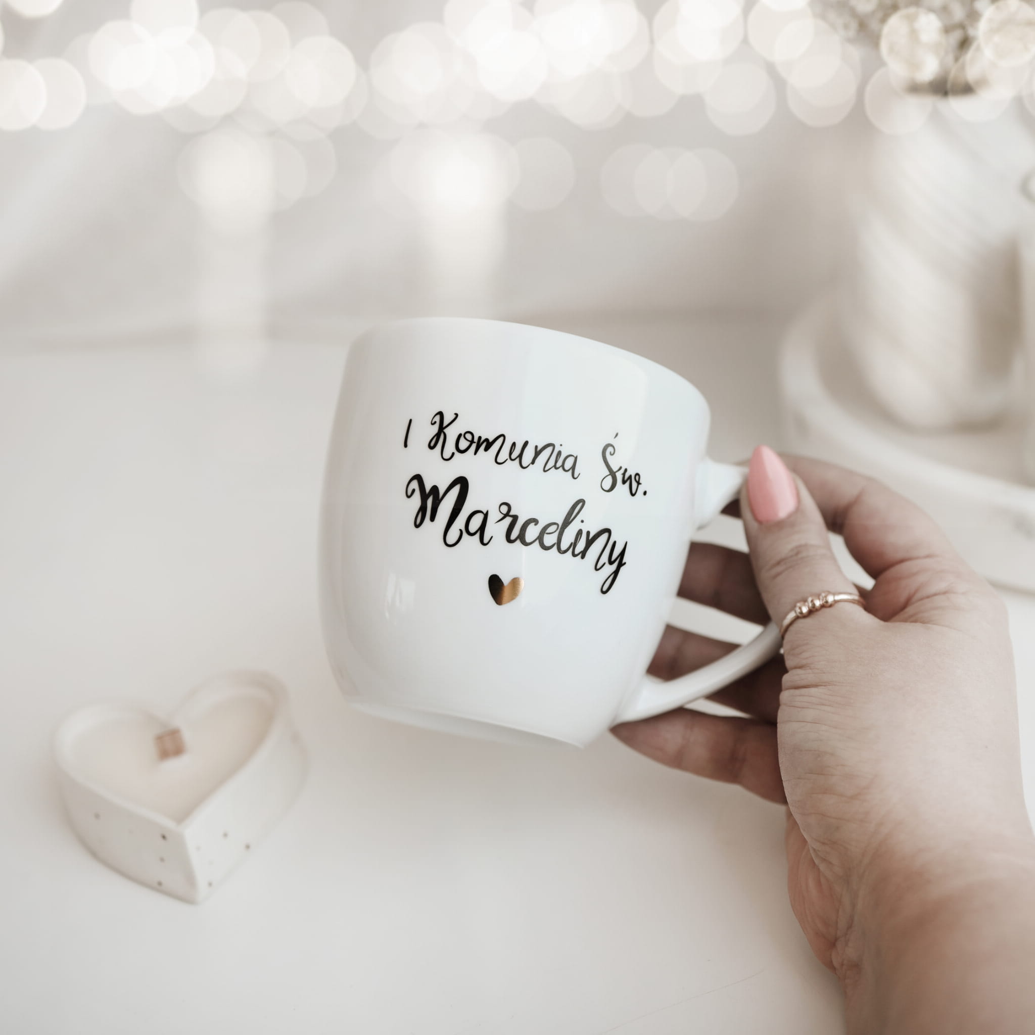 Delikatny, porcelanowy kubek o pojemności 300 ml to wyjątkowa pamiątka z okazji Pierwszej Komunii Świętej. Klasyczny wzór, subtelna kolorystyka i możliwość personalizacji sprawiają, że jest to upominek, który pozostanie z dzieckiem na długie lata.