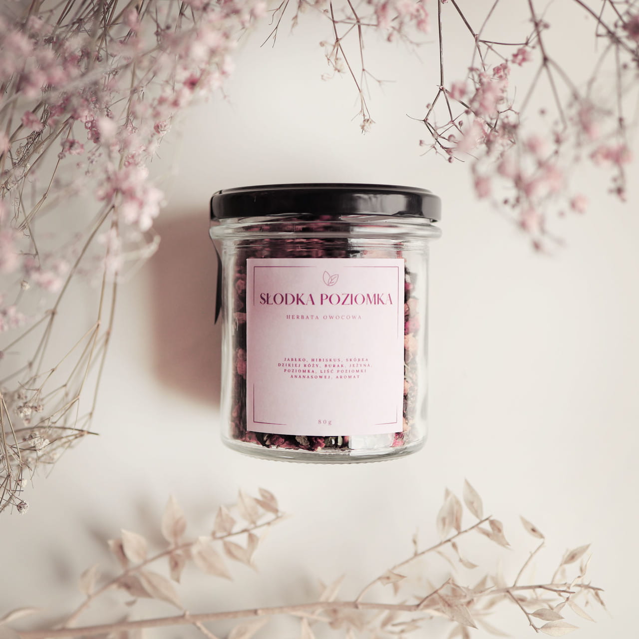 Na spokojne, chłodniejsze wieczory powstała Owocowa Herbata 80 g - Smak Słodkiej Poziomki na Jesienne Wieczory dla Miłośników Herbat, która pachnie owocowo i miękko „otula” smakiem. To owocowa mieszanka z poziomką, idealna wtedy, gdy masz ochotę na coś słodkiego w aromacie, ale nadal herbacianego w rytuale.