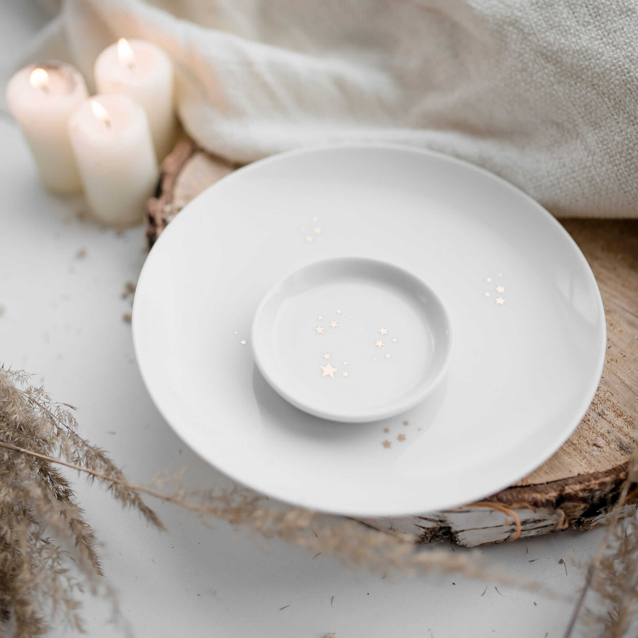 Talerz deserowo-śniadaniowy 20 cm - złote gwiazdki
